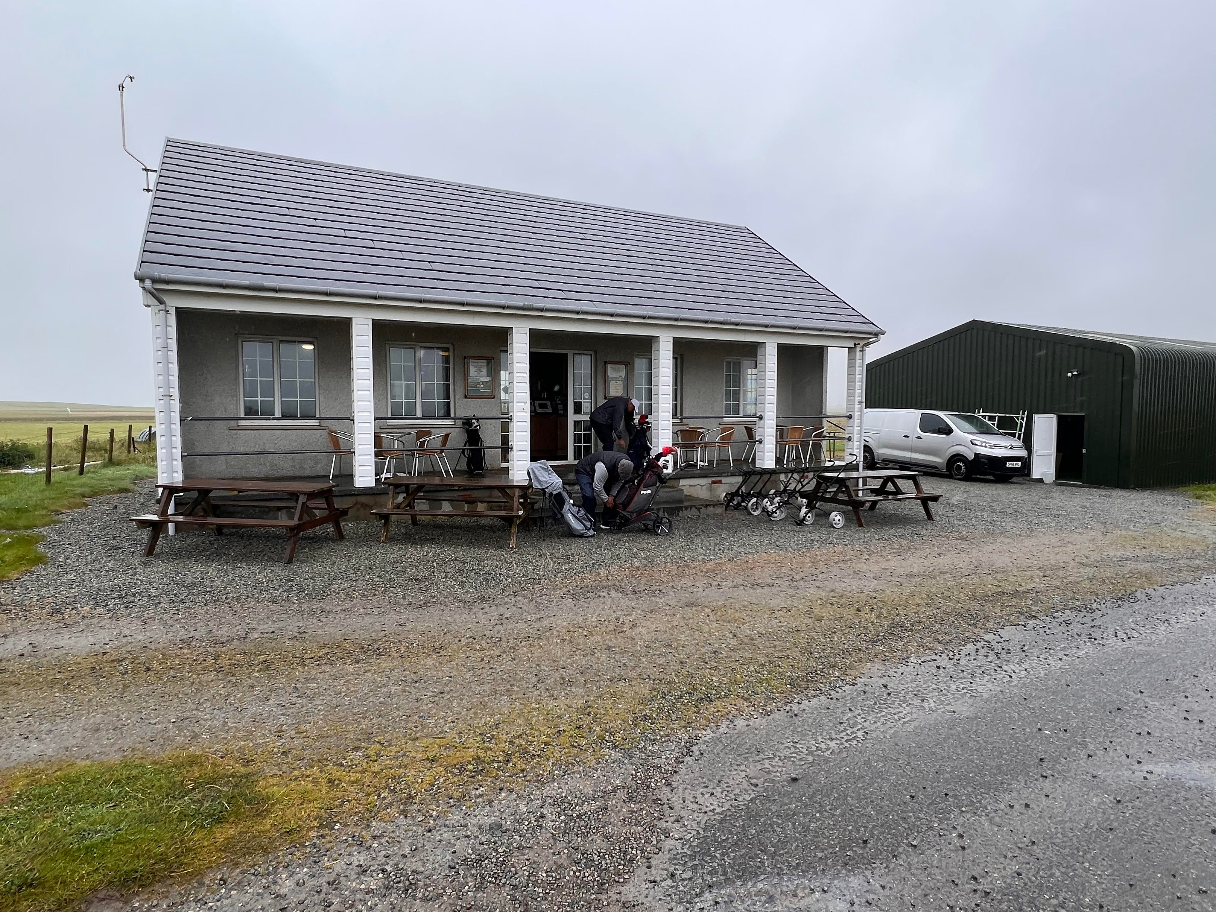 We rolled down the access/road, past Lady Cathcart’s old residence and came upon the clubhouse. It truly fits the moment and the course. A tiny, eight hundred square foot, one-room house. Just enough room to accommodate the pro-shop, café/bar with a couple tables and restrooms. It even had a few picnic tables out front. What else do you need?
