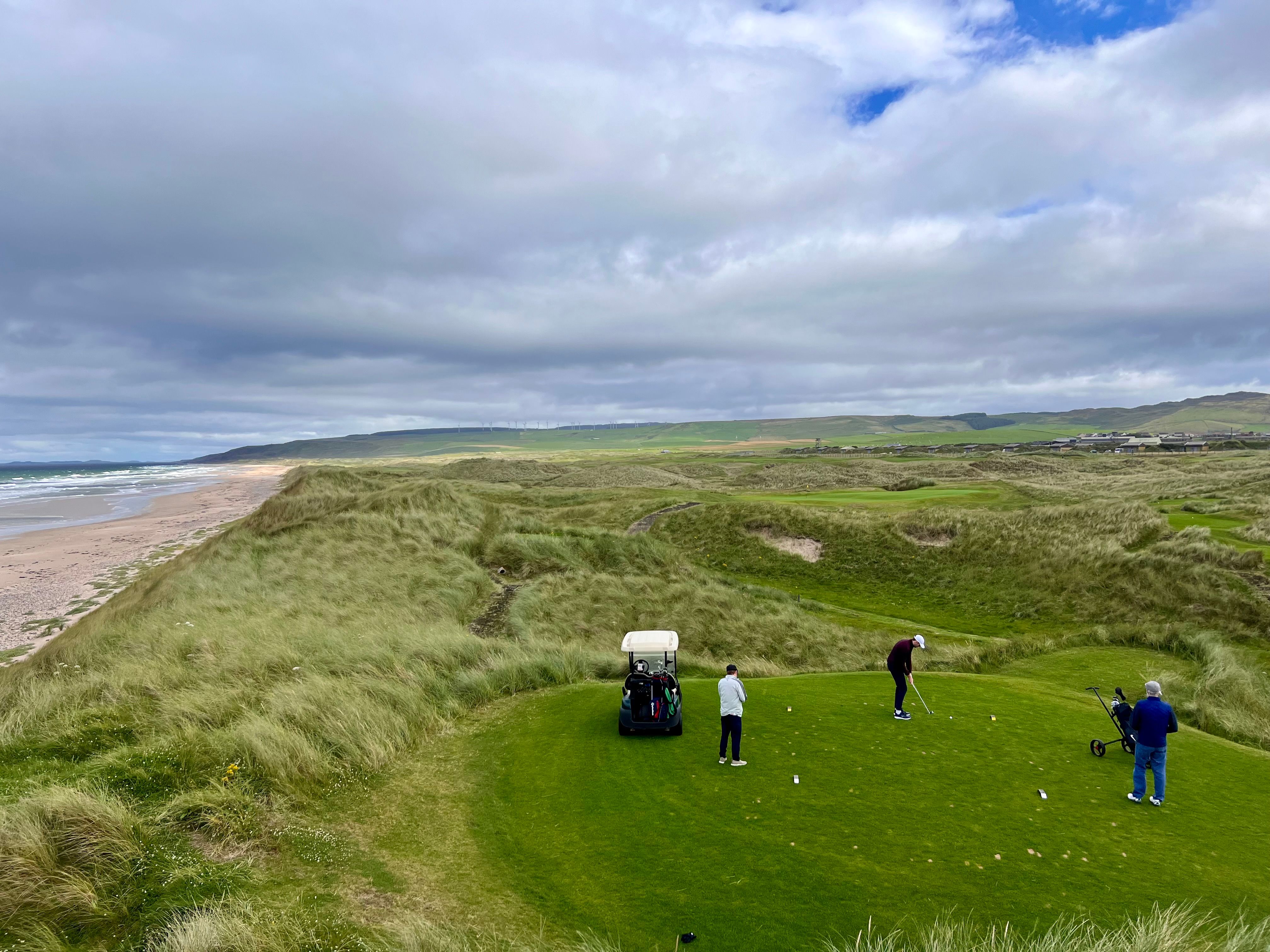 The stretch of holes from 13 to 16 is the best. Three wonderful, well-designed, strategic and memorable par-fours, followed-up with the par-5 sixteenth—the number 1 handicap hole. The names of the holes were equally memorable—Black Sheep (the course’s logo), Rifle Range (where Scooter rang the bell with a birdie) Johnny Currie’s Rib (a local Sea Pilot) and Beinn an Oir (Mountain of Gold). Well done, DMK!